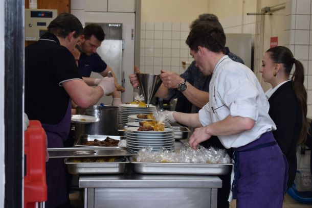 Au menu : feuilleté de volaille aux champignons, cuisse de canette confite au miel et moutarde, légumes, entremet pomme « tatin », entre autres gourmandises... Un vrai régal pour les papilles !