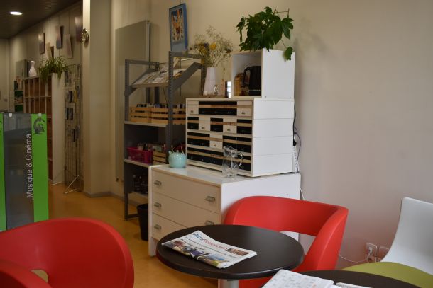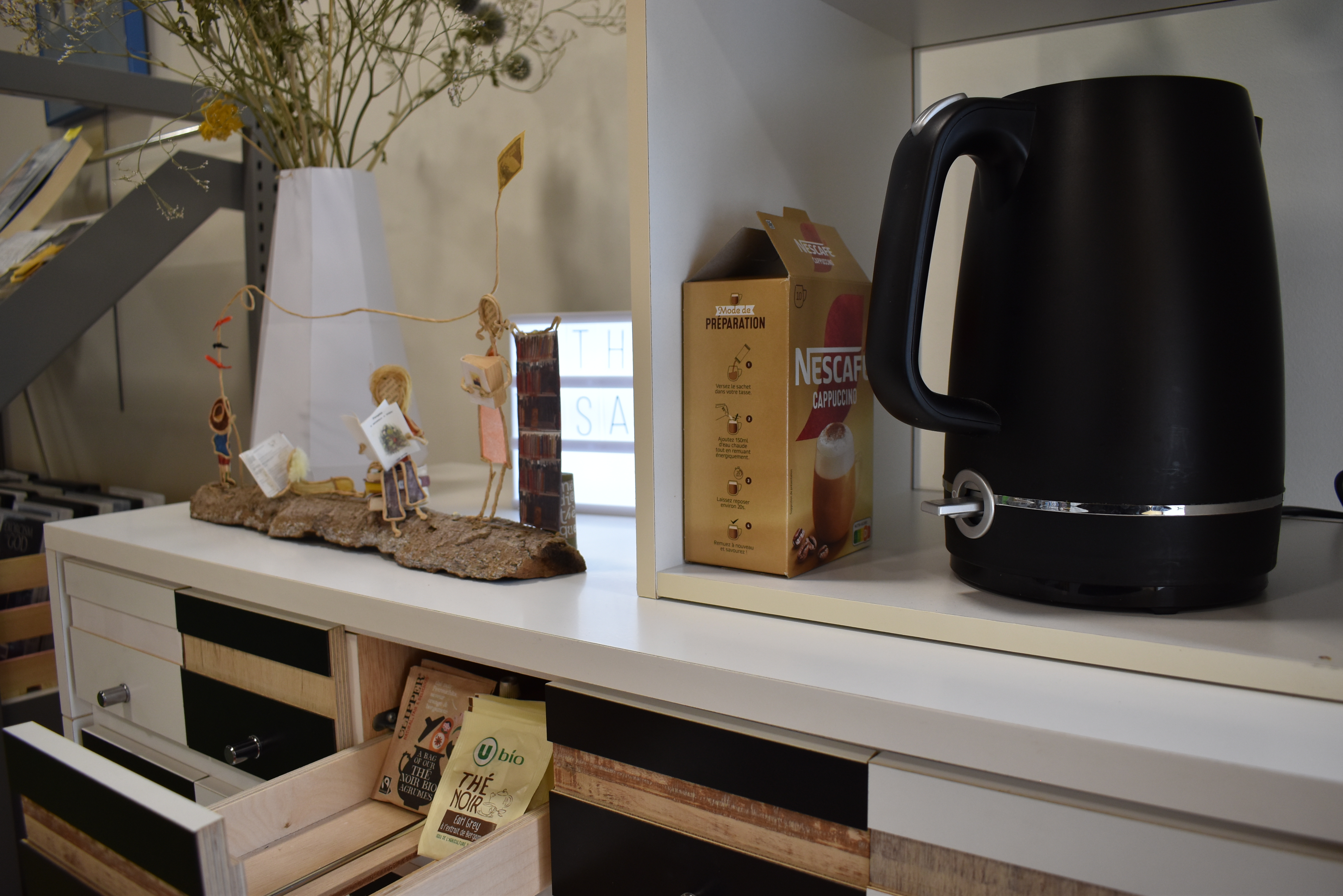 Dès l’accueil, vous trouverez désormais un coin thé et tisane, basé sur le principe du don. Un petit endroit convivial où chacun peut se servir une boisson à savourer au fil de ses lectures.