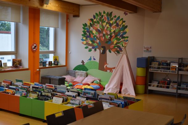 Dans l’espace jeunesse, plusieurs étagères ont été réorganisées pour faciliter la circulation et rendre l’endroit plus ergonomique. Le coin « bébé-lecture », aménagé de coussins et de couvertures, offre aux tout-petits un cocon douillet pour leurs premières découvertes de la lecture.