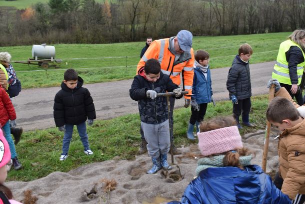 Ce mardi 2 décembre, deux classes de CE1 ainsi qu’une classe de CM1 de l'école élémentaire Baudon-Rostand de Nogent, soit près d’une cinquantaine d’élèves, ont pris part au projet Sensibilis’haie : une opération citoyenne et participative de plantation de haies, portée par la Fédération Nationale des Chasseurs et financée par l’Office Français de la Biodiversité via le dispositif d’écocontribution. Cette initiative se déroule tout au long de la saison de plantation, de novembre à mars, et mobilise de nombreuses collectivités en France.