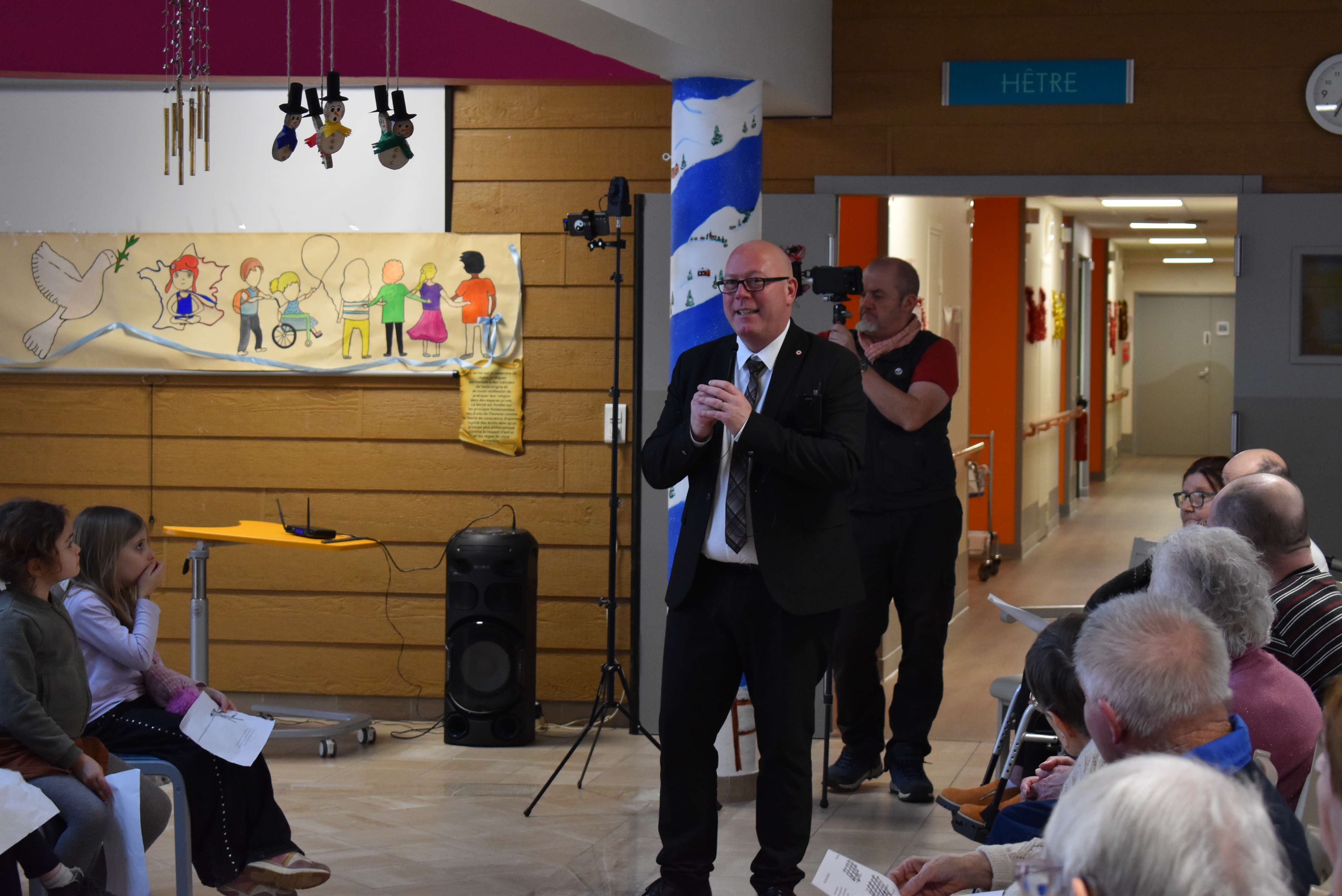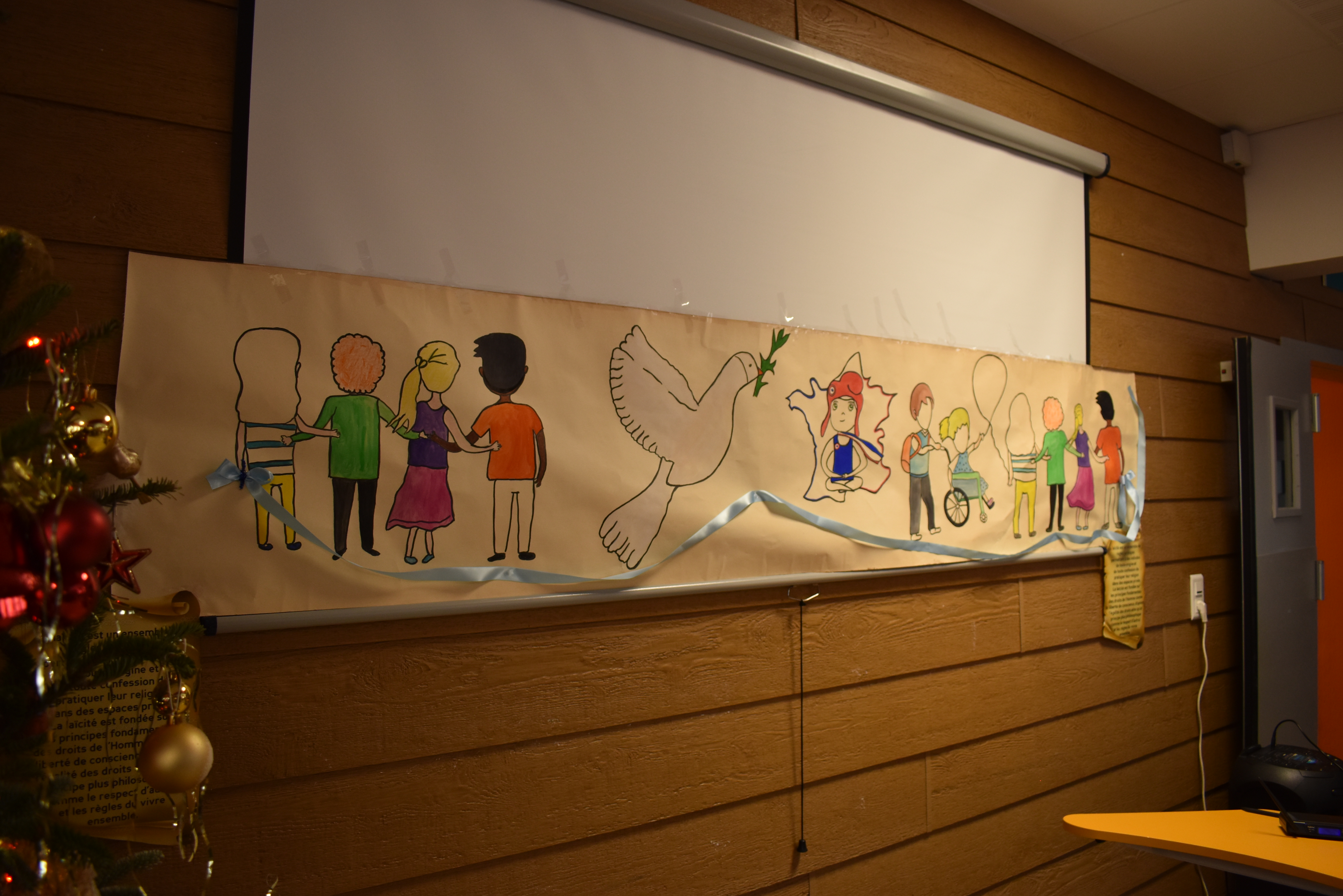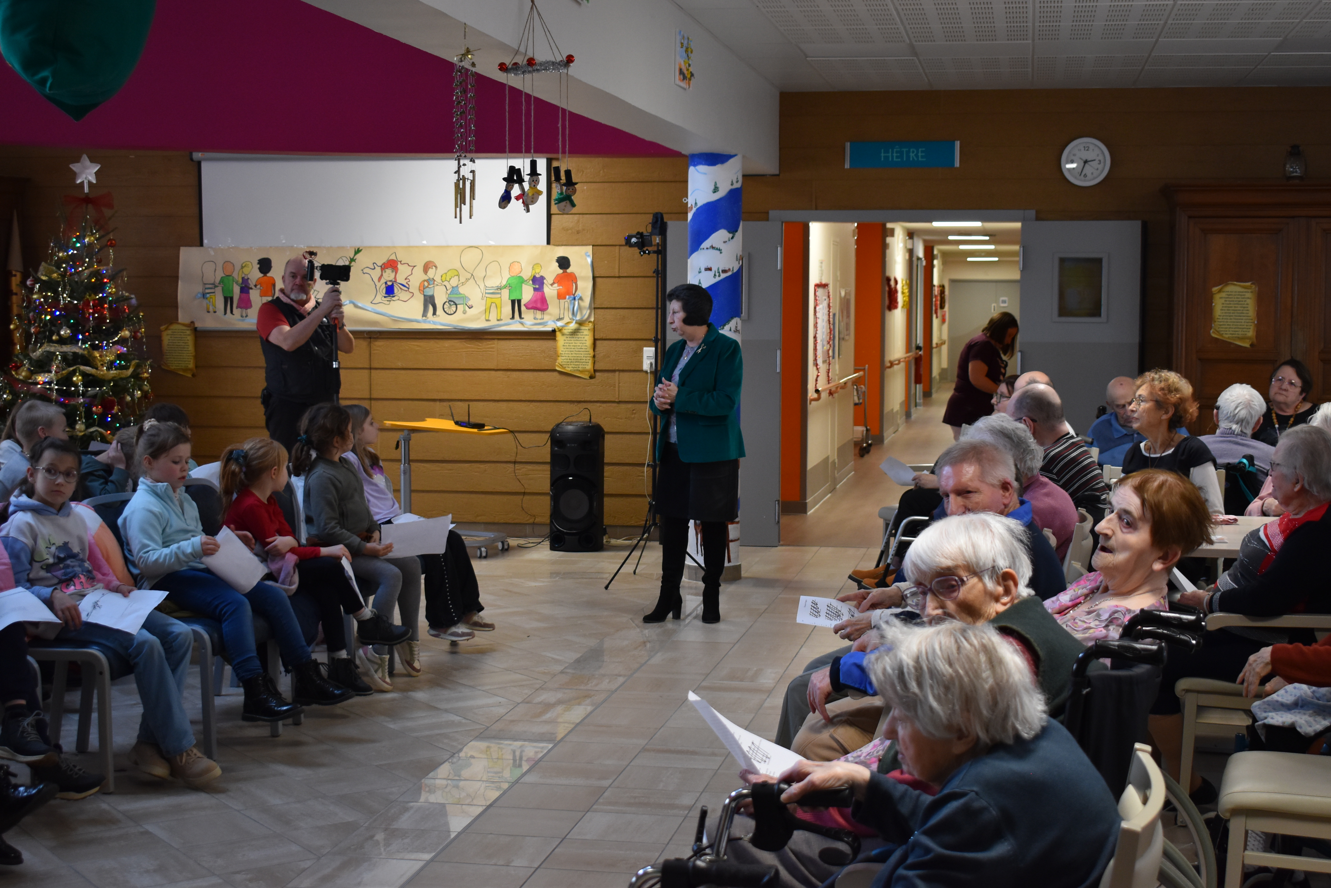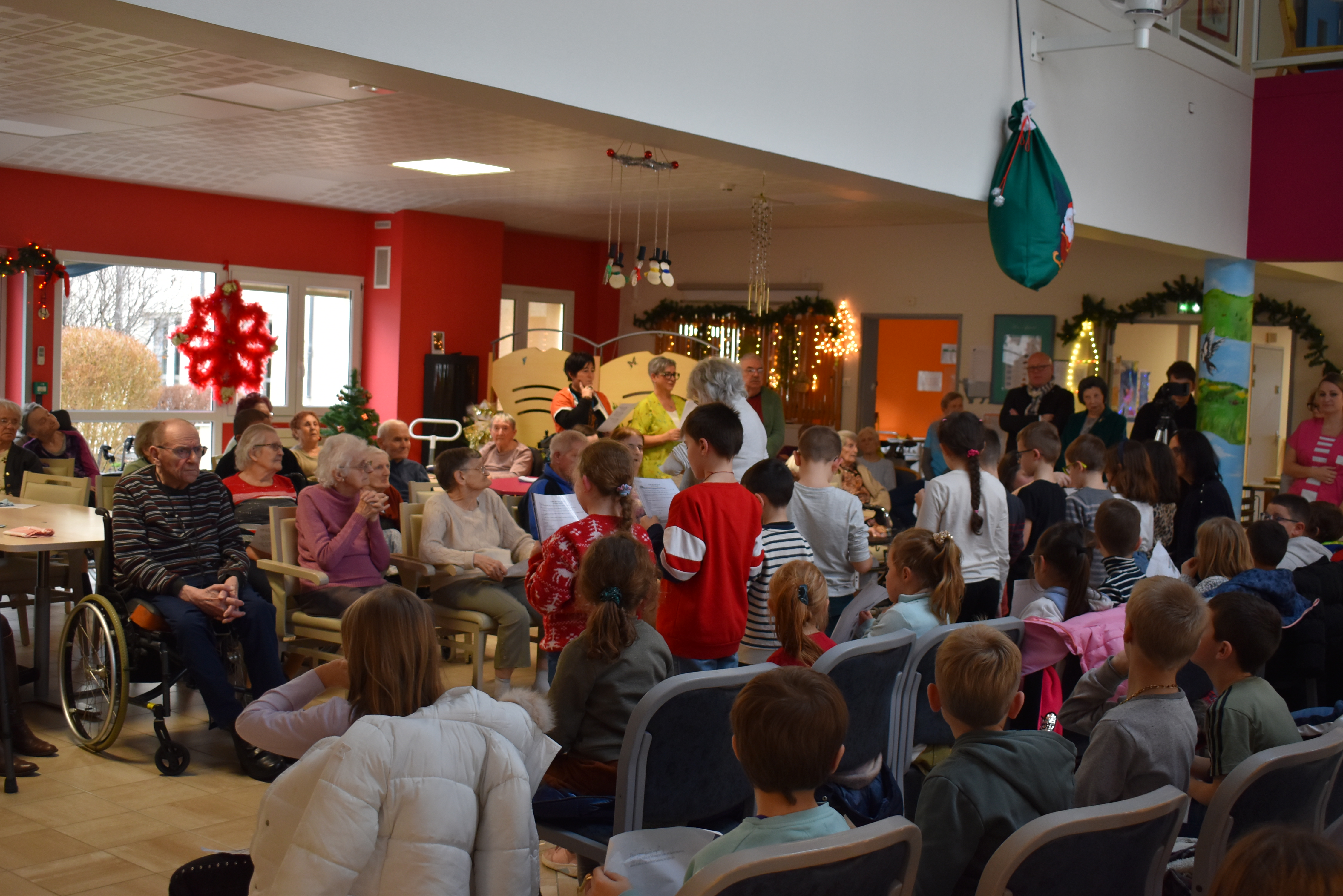 Le 15 décembre, les enfants se sont rendus à l’EHPAD Félix Grelot, accompagnés de leurs enseignants, pour partager à leur tour des lectures avec les résidents. Ce temps d’échange a permis de créer du lien social et de donner corps aux valeurs républicaines à travers la parole et l’écoute. Une fresque a également été réalisée à la main afin de symboliser ces valeurs et de laisser une trace durable de l’événement.