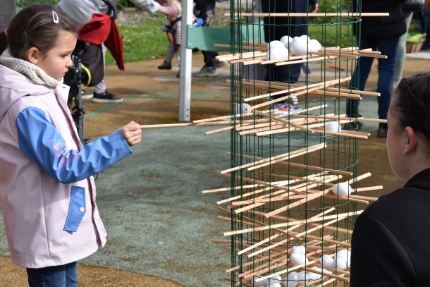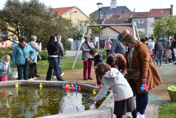 Une fois les paniers bien remplis, d’autres activités les attendaient : pêche aux canards, œufs en équilibre, jeu de quilles… À la clé pour chaque défi remporté : un gros œuf en chocolat !