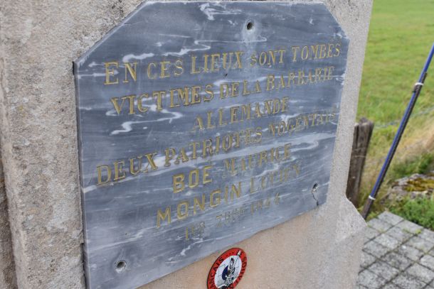 Maurice BOÉ et Lucien MONGIN ont perdu la vie en 1944 lors d’un affrontement avec un groupe de soldats allemands. Jean RACLOT, grièvement blessé, a survécu en se faisant passer pour mort. Cette scène d'effroi s'est déroulée à proximité même de l’endroit où s’élève aujourd’hui la stèle Boé-Mongin.