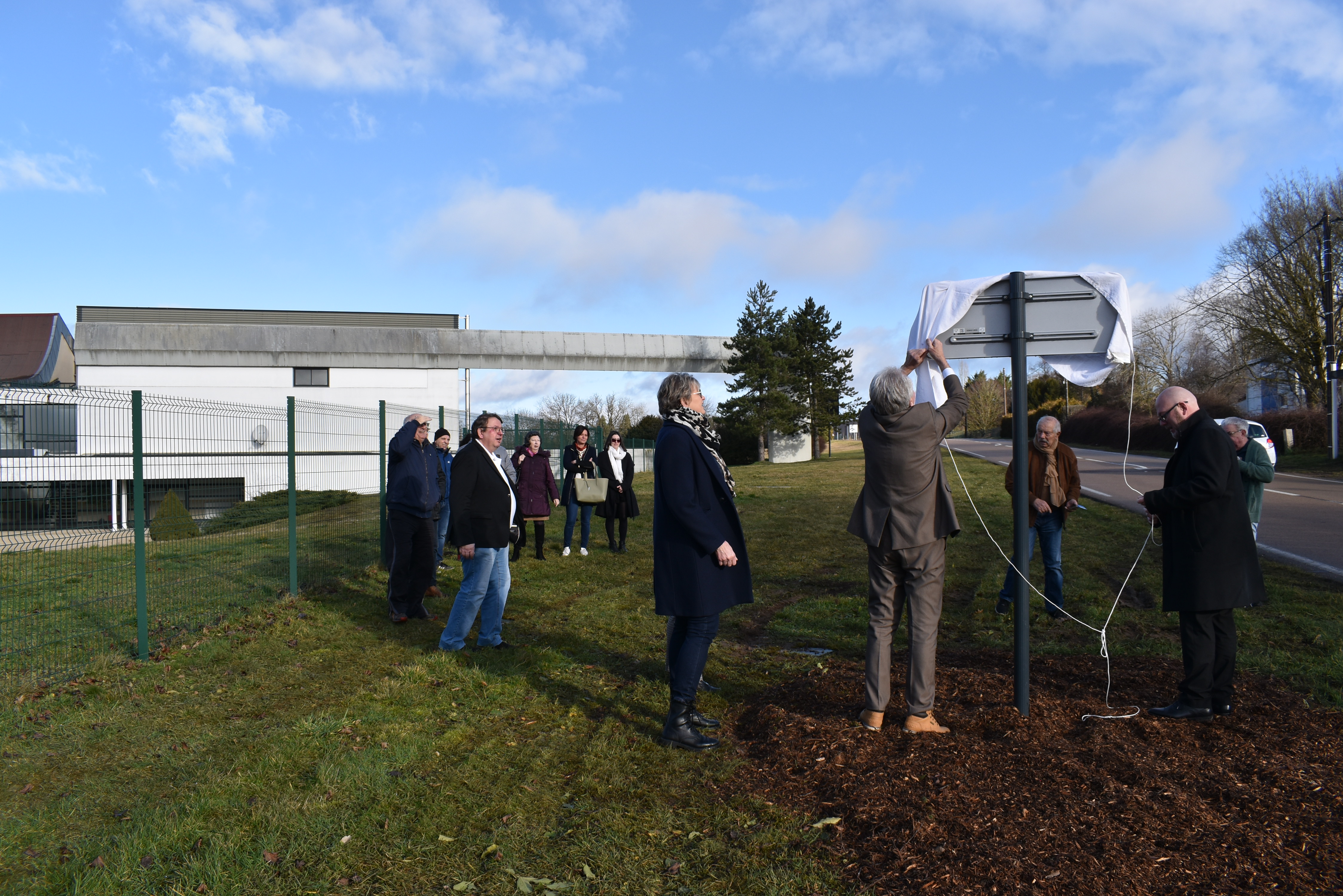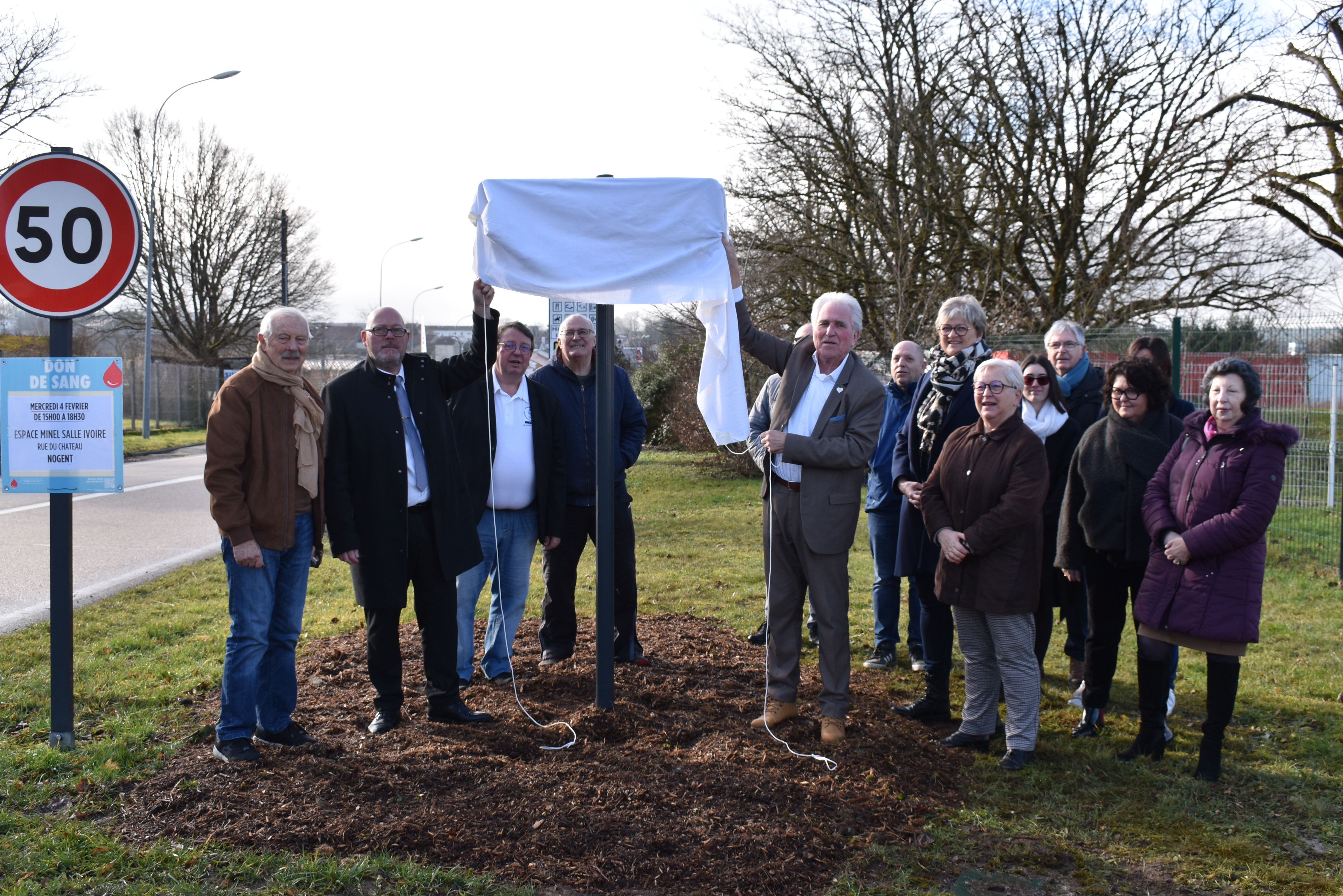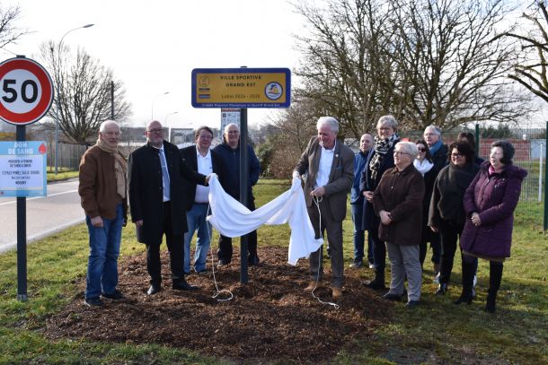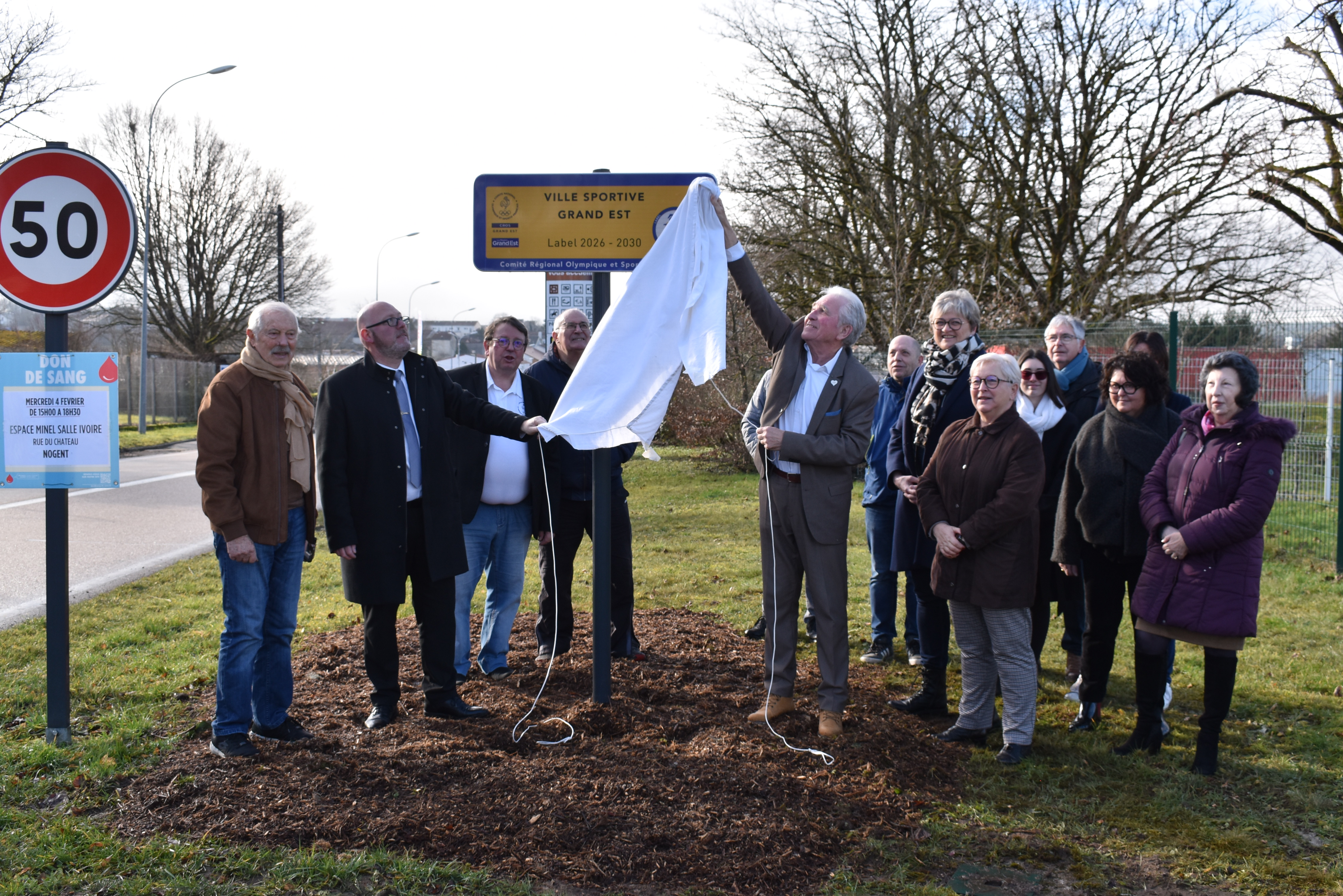 Le dévoilement du panneau a été effectué par Thierry PONCE, Maire de Nogent, et Michel LEQUEUX, Vice-président du CROS Grand Est, en présence de plusieurs élus de la commune, notamment Corinne COLLIER, Adjointe aux Associations et à l'Enfance, et de présidents d’associations nogentaises.