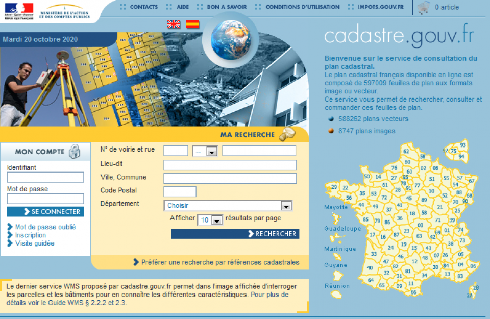 Le plan cadastral français disponible en ligne est composé de 598 132 feuilles de plan aux formats image ou vecteur.